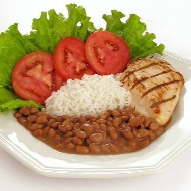 Bife, um ovo frito, arroz, feijão, macarrão, legumes do Dia, acompanhamento do Dia e porção de salada. Alterações/trocas não são permitidas. Imagem meramente ilustrativa.