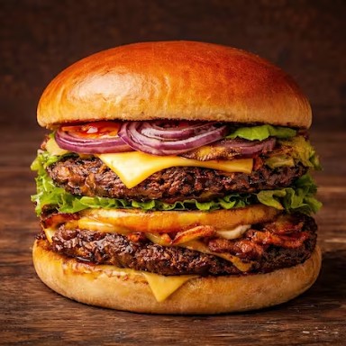 Um hambúrguer de carne bovina com 150g. Monte uma combinação sofisticada que vai surpreender seu paladar! (Imagem ilustrativa)