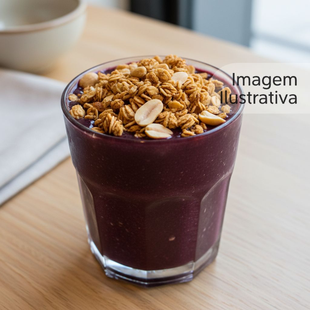 Açaí cremoso com banana e granola.