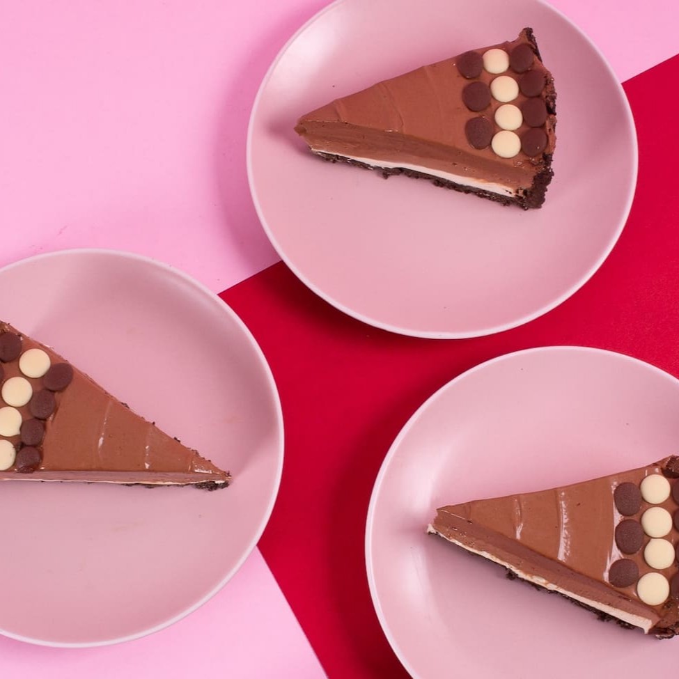 O blend perfeição! Torta com duas camadas de recheio, brigadeiro cremoso ao leite e uma super mousse mousse de maracujá com geleia da fruta, e base com massa de bolacha Oreo.