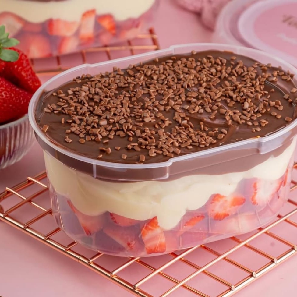 Versões a partir de 250ml, o potinho mais desejado de brigadeiro 50% de cacau com o irresistível brigadeiro branco. Acrescentamos a essa combinação harmoniosa, morangos frescos picados, trazendo um toque de frescor e acidez que equilibra a doçura dos brigadeiros. Este é o produto ideal para ser saboreado imediatamente, proporcionando uma experiência gastronômica inesquecível. Perfeito para todos os apreciadores de sobremesas gourmet! Cada versão de tamanho é enviada em um pote de formato diferente, o pote da foto tem 1500ml.