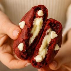 Elegante, intenso e simplesmente inesquecível. Um cookie ma-ra-vi-lho-so de massa Red Velvet, com aquele toque amanteigado e levemente aveludado, recheado com um ganache cremoso de cream cheese e salpicado com gotas de chocolate branco que derretem na boca. Cada unidade, com cerca de 150g de pura tentação, é uma experiência digna de aplausos — perfeita para quem ama o contraste entre o doce, o leve e o irresistível. Dica de ouro: aqueça por 15 segundos e sinta a magia acontecer — o recheio fica ainda mais cremoso e o sabor, simplesmente perfeito.