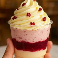 Camadas envolventes de brigadeiro branco artesanal, geleia de frutas vermelhas e trufado cremoso da mesma fruta, finalizadas com chantininho leve e toque de cranberry. Uma combinação elegante, equilibrada e irresistível — perfeita para quem ama o contraste entre o doce e o levemente ácido. Copo com aproximadamente 220g.