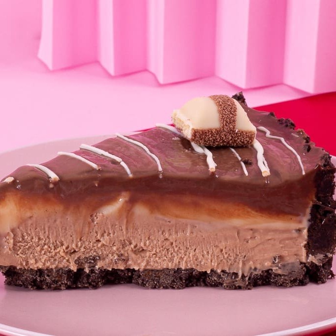 Desfrute de uma irresistível Fatia Kinder Bueno, uma especialidade da categoria 'Fatia de Tortas'. Esta delícia é composta por uma massa crocante de bolacha Oreo, que envolve um recheio secreto de Kinder Bueno, proporcionando uma explosão de sabor. O prato é finalizado com um sofisticado creme belga branco e um ganache nobre. Uma experiência culinária imperdível para os amantes de doces!