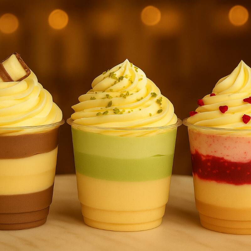 Camadas delicadas de brigadeiro branco artesanal, ganache de pistache e trufado cremoso da mesma noz, finalizadas com chantininho leve e pistache triturado. Um equilíbrio perfeito entre suavidade e intensidade, com o sabor marcante e elegante do pistache em destaque. Copo com aproximadamente 220g.