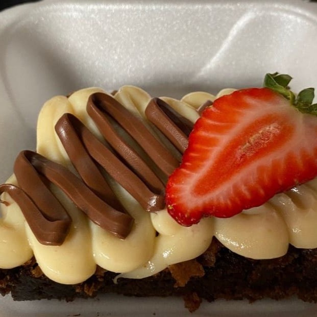 Um delicioso copo composto com camadas de mousse da polpa de morango, creme de brigadeiro de chocolate 50% cacau e uma generosa camada de brownie fofinho e morangos frescos.
