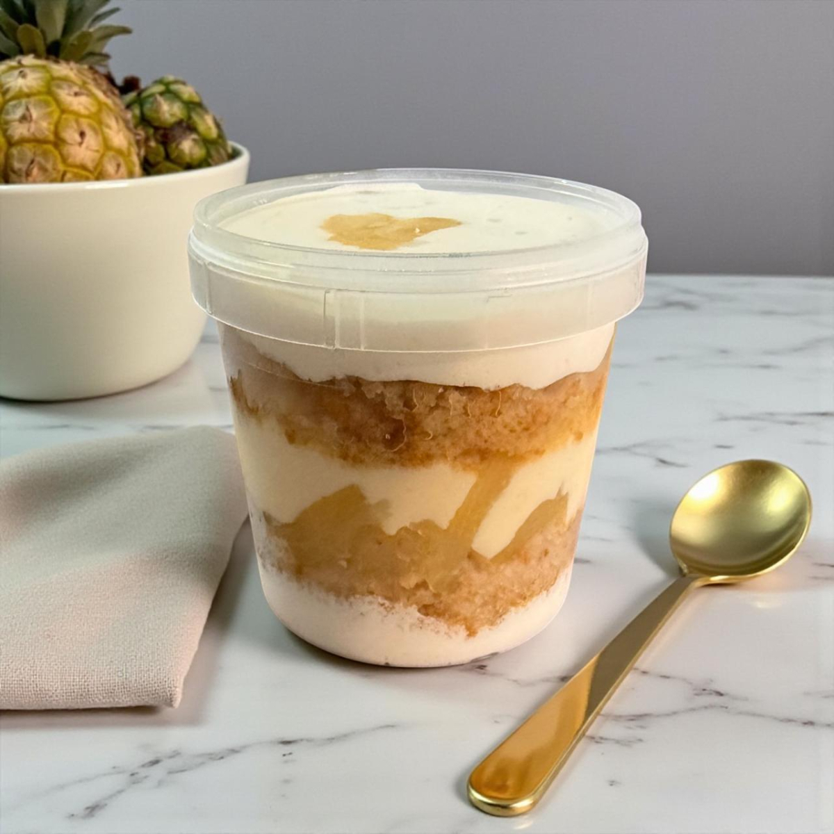 Massa bem fofinha de baunilha , mousse de leite Ninho ,creme belga branco e compota artesanal de abacaxi