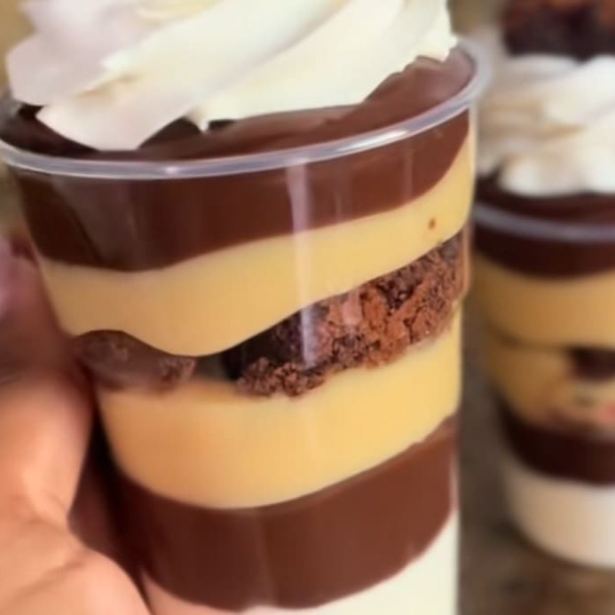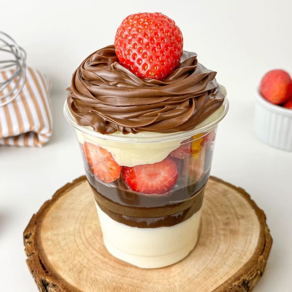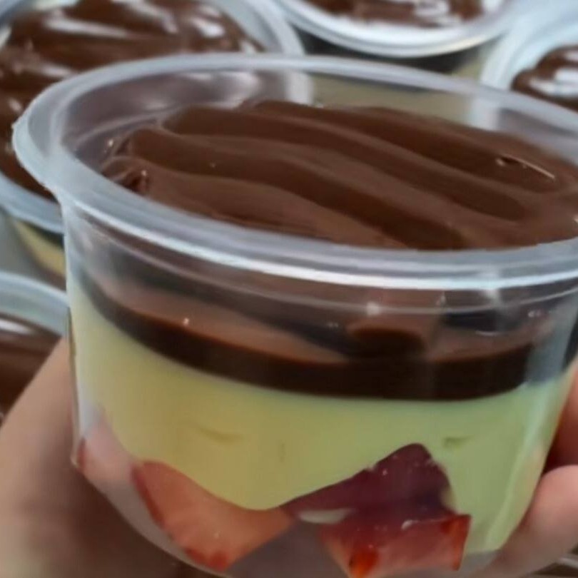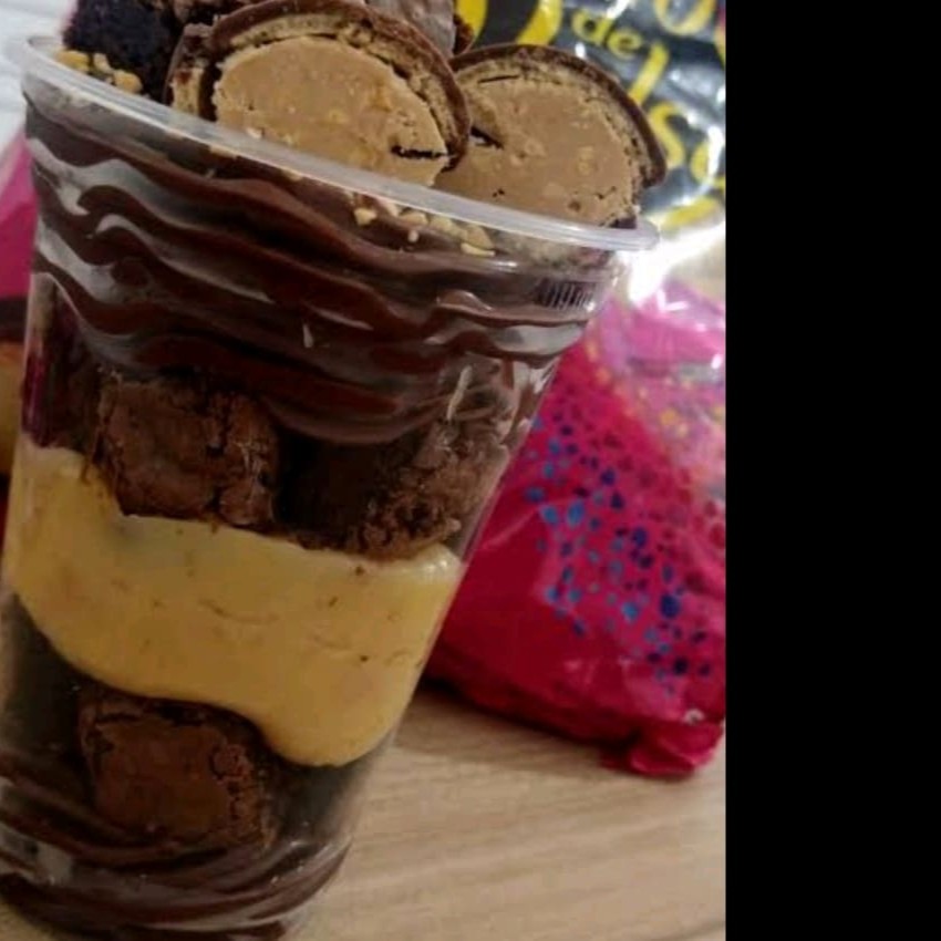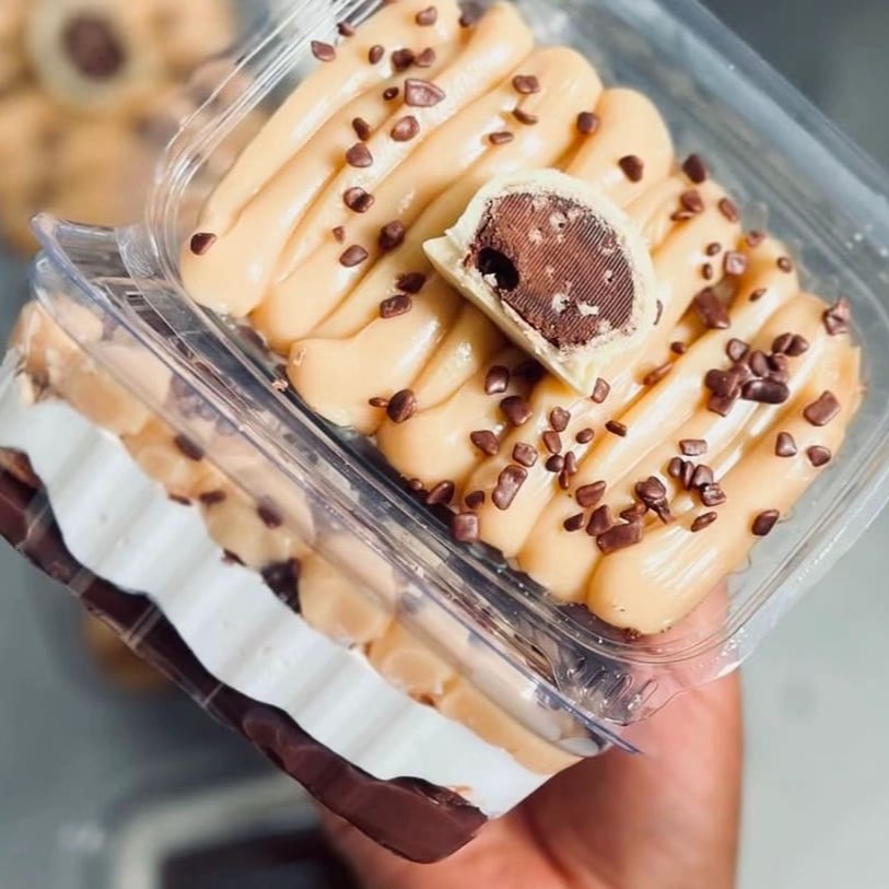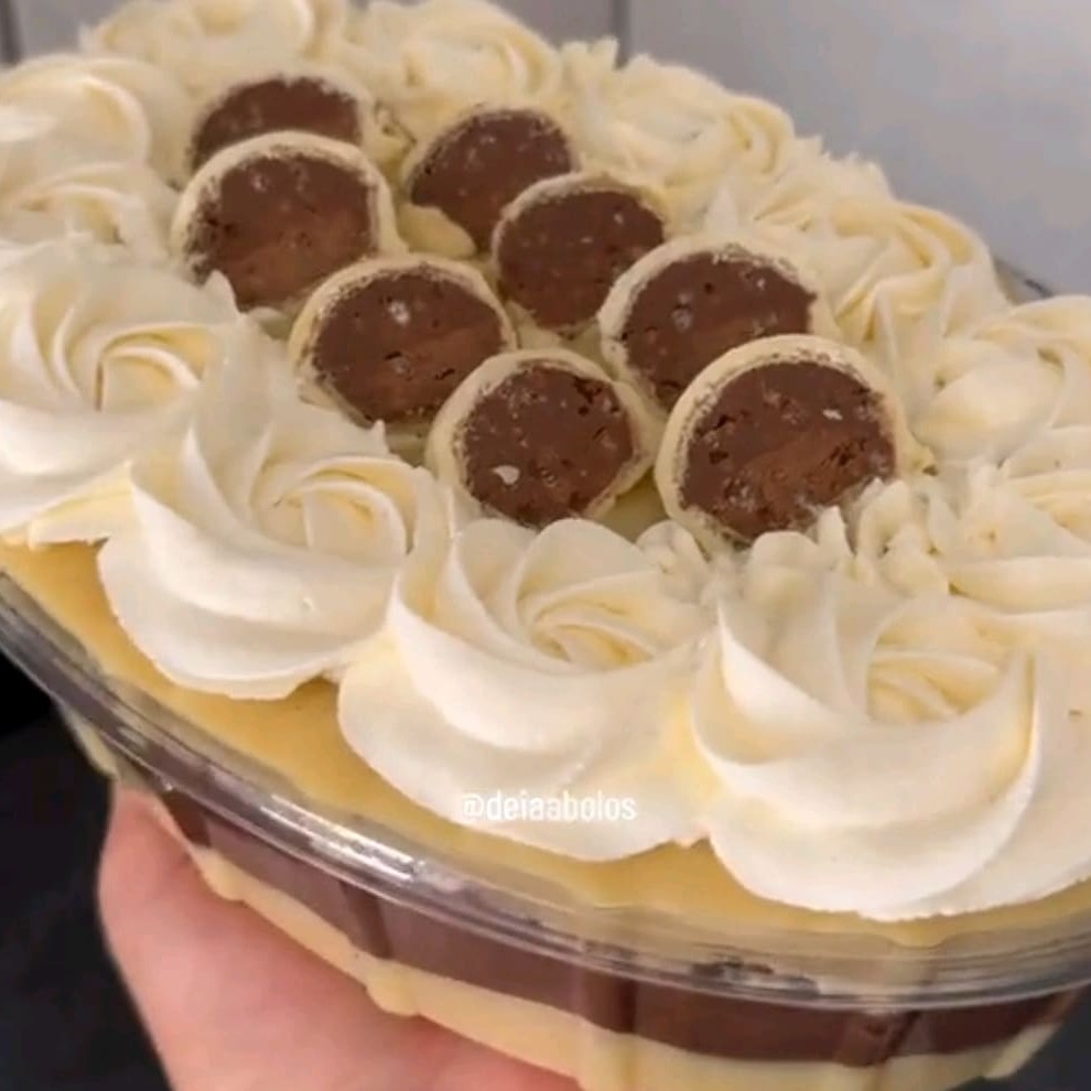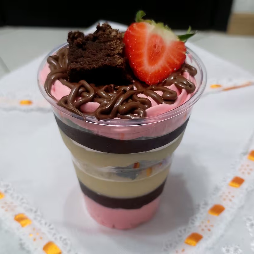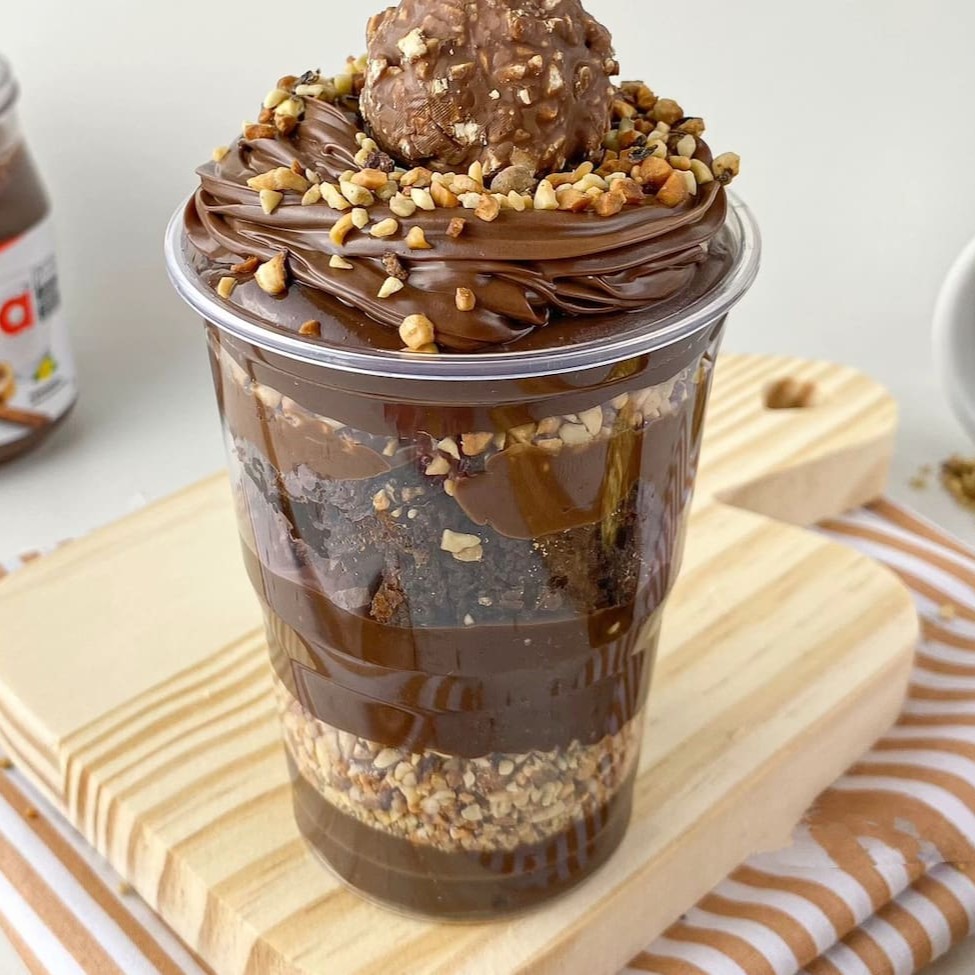 Uma sobremesa inrresistivel com sabor de quero mais feita a base de Bombom picado creme de chocolate trufado ,brigadeiro de Ninho ,chantilly de creme de leite fresco