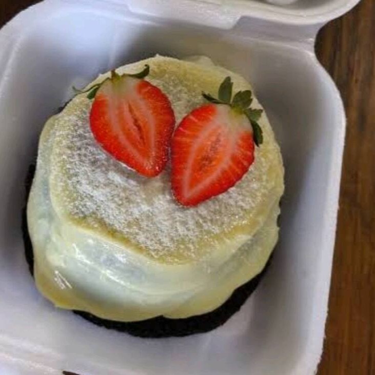 Bolo mini vulcão massa red velvit com brigadeiro de Ninho morangos picados no recheio e finalizado com morangos frescos e muito brigadeiro de Ninho