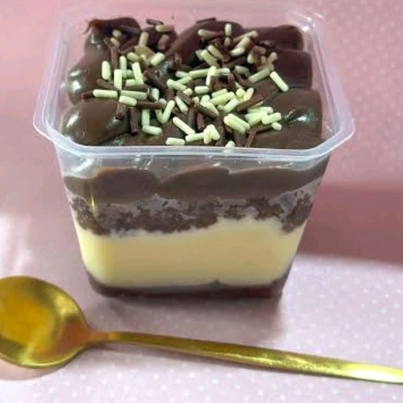 Pavê dois amores uma sobremesa na medida certa leva creme de chocolate bolacha Maizena creme de Ninho e confeitos uma ótima pedida pra matar a vontade de um docinho
