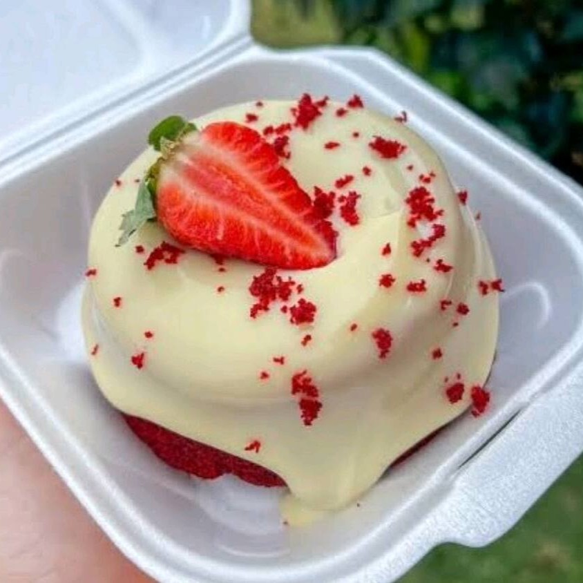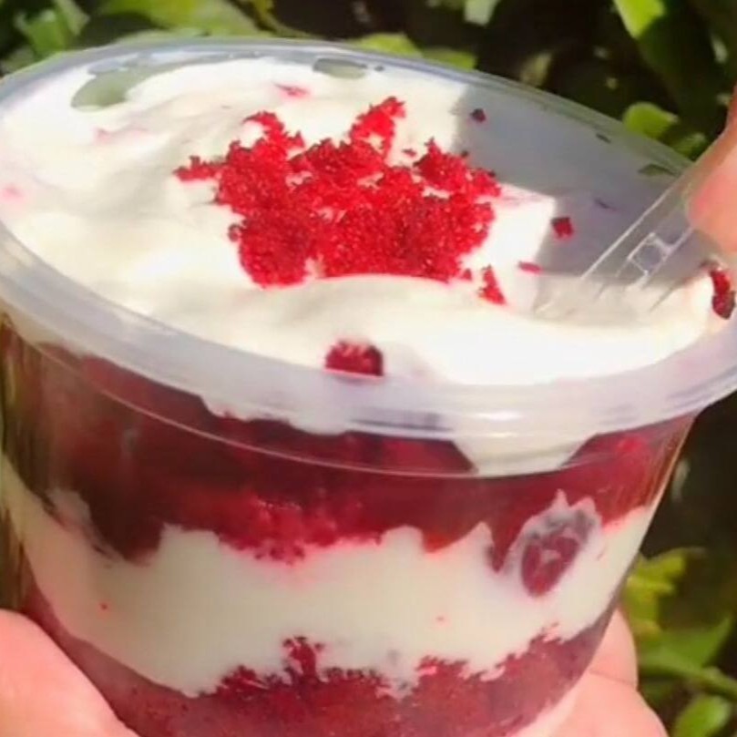 Bolo mini vulcão massa red velvit com brigadeiro de Ninho por cima e finalizado com bolo picado