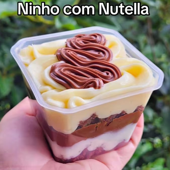 Uma deliciosa combinação creme de Ninho massa de chocolate Nutella e finalizado com brigadeiro de Ninho e Nutella