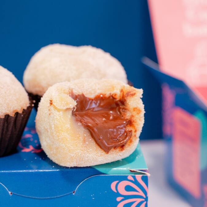 Brigadeiro branco macio e cremoso, recheio de Nutella, envolto no Leite Ninho.