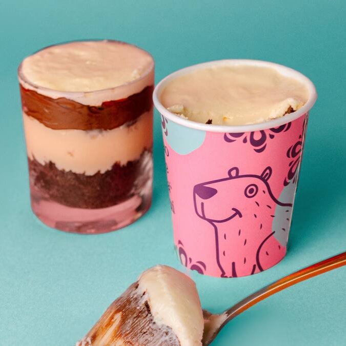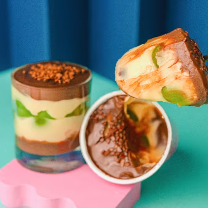 Delicioso mousse aveludado de Ninho com brigadeiro cremoso de maracuja refrescante e bolacha de leite.