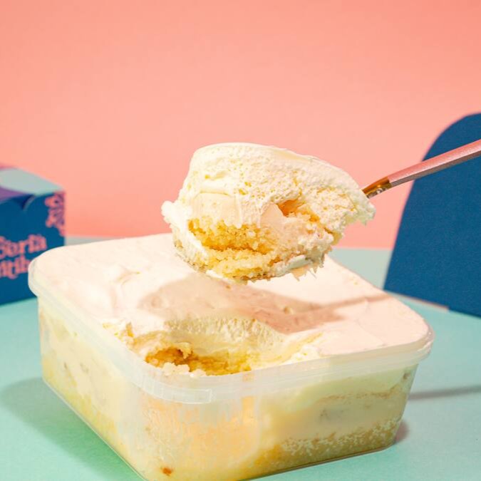 Feito com um delicioso doce de leite, banana fresca, e massa de bolacha de leite finalizado com creme de nata e canela em pó.