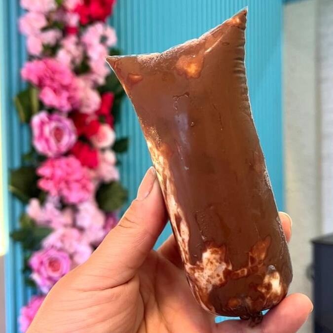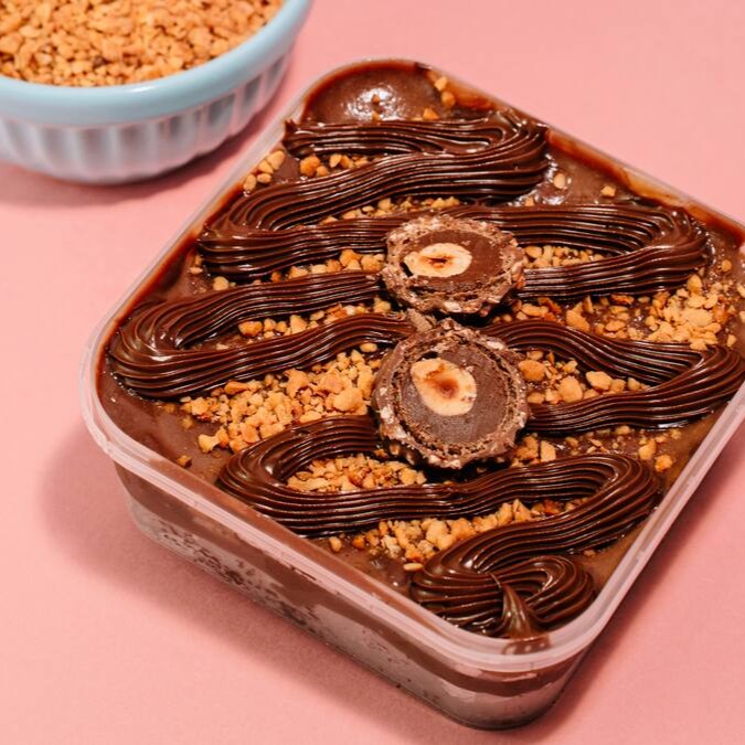 Delicie-se com uma casca crocante envolvida em chocolate ao leite, com um recheio irresistível de Nutella e brigadeiro cremoso de chocolate branco. Decorado com o toque especial de Kinder Bueno e chocolate branco, cada mordida é uma experiência divina que vai te levar ao êxtase dos sabores.