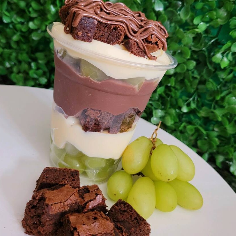 Temos copo da felicidade de uva com brigadeiro preto,uva , brigadeiro de Ninho, brownie 350ml