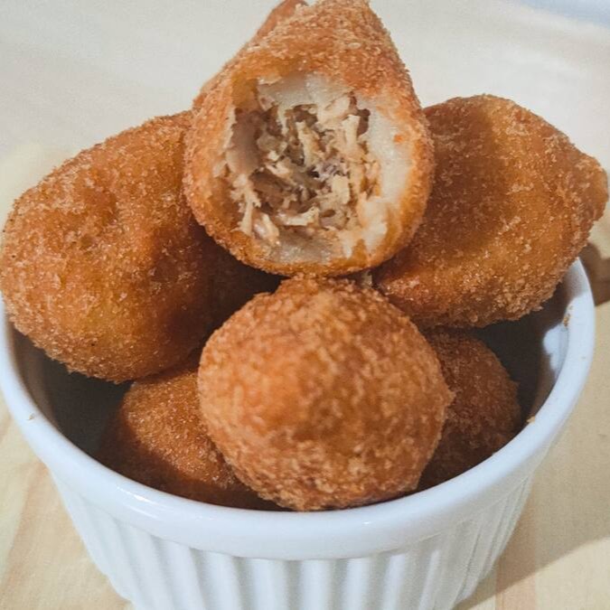 Nossas deliciosas coxinhas, são feitas com a massa tradicional, feita artesanalmente em nossa cozinha, massa bem temperada, no recheio, utilizamos sobrecoxa de frango, o que deixa o recheio mais suculento, muito bem temperado. A porção contém 10 und de 20g cada.