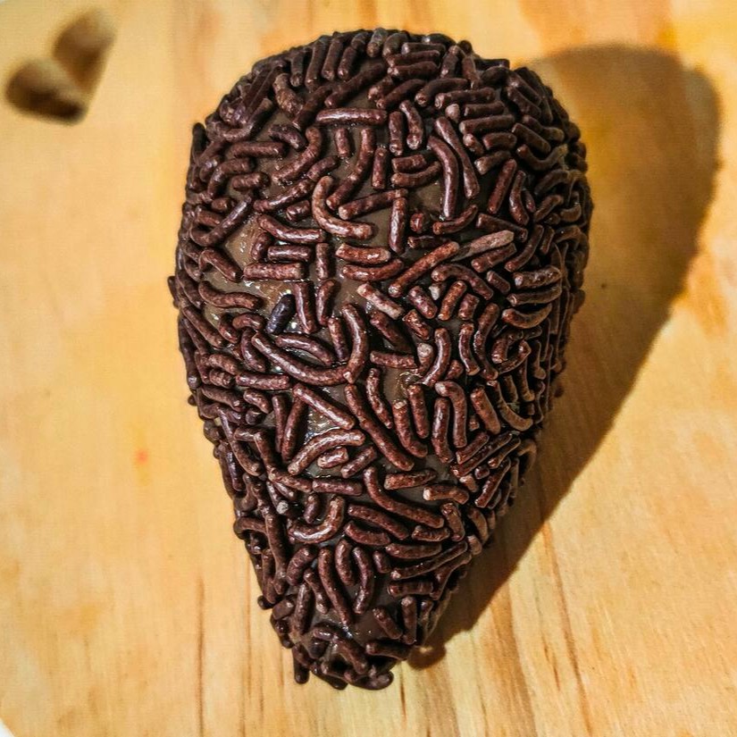 Hummm um super morango, envolto em um brigadeiro ao leite bem cremoso e suculento, passado em granulado tradicional.