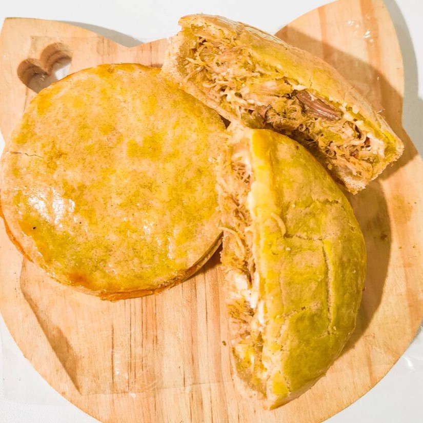 Massa artesanal muito saborosa, recheado com sobrecoxa de frango muito bem temperado. Salgado assado.
