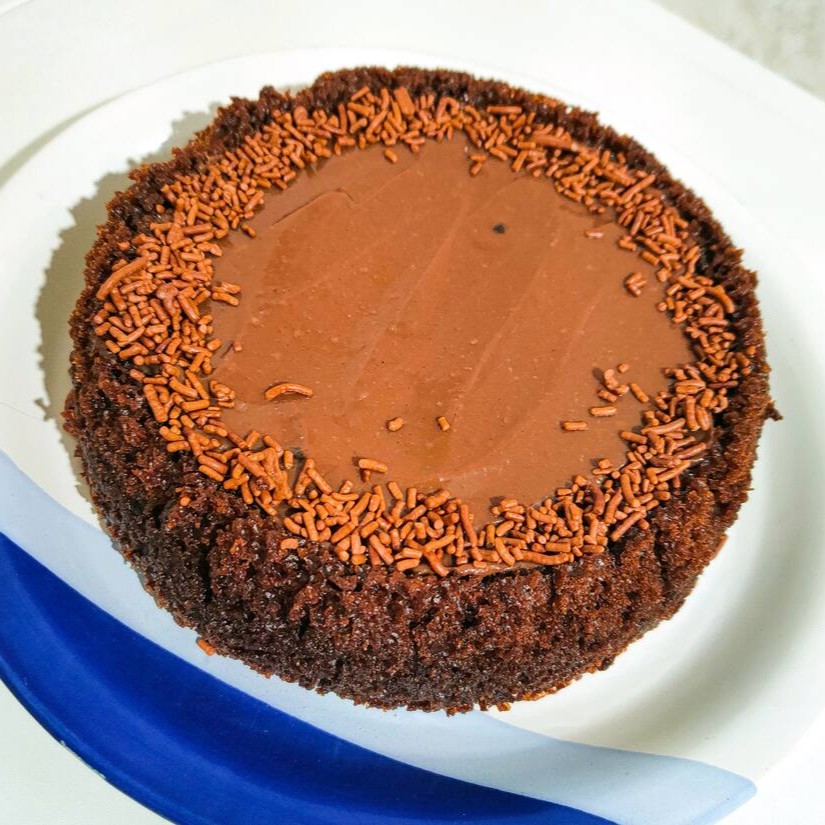 Uma massa bem chocolatuda, úmida e saborosa, recheada com brigadeiro ao leite, e finalizada com mais uma camada de brigadeiro e granulé