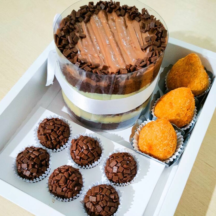 A box perfeita para comemorar ao lado de quem você ama! Nossa caixa contém: 1 mini naked 10cm + 6 brigadeiro + 3 mini coxinhas + 1 refrigerante 200ml. Acompanha vela faísca. Vai em uma linda caixa com tampa de acetato, Acompanha um lindo cartão, se quiser enviar um recadinho, deixe aqui na descrição do pedido: a mensagem escrita, e o nome de quem irá receber (certifique de terá alguém no endereço, e nos envie o código de confirmação no chat)