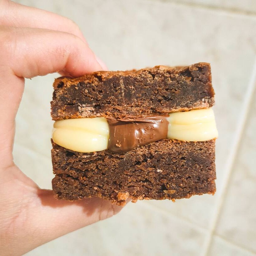 Huum para os amantes do brownie, criamos essa versão deliciosa. O nosso Brownie super chocolatudo, com muito brigadeiro de Ninho, finalizado com Nutella.