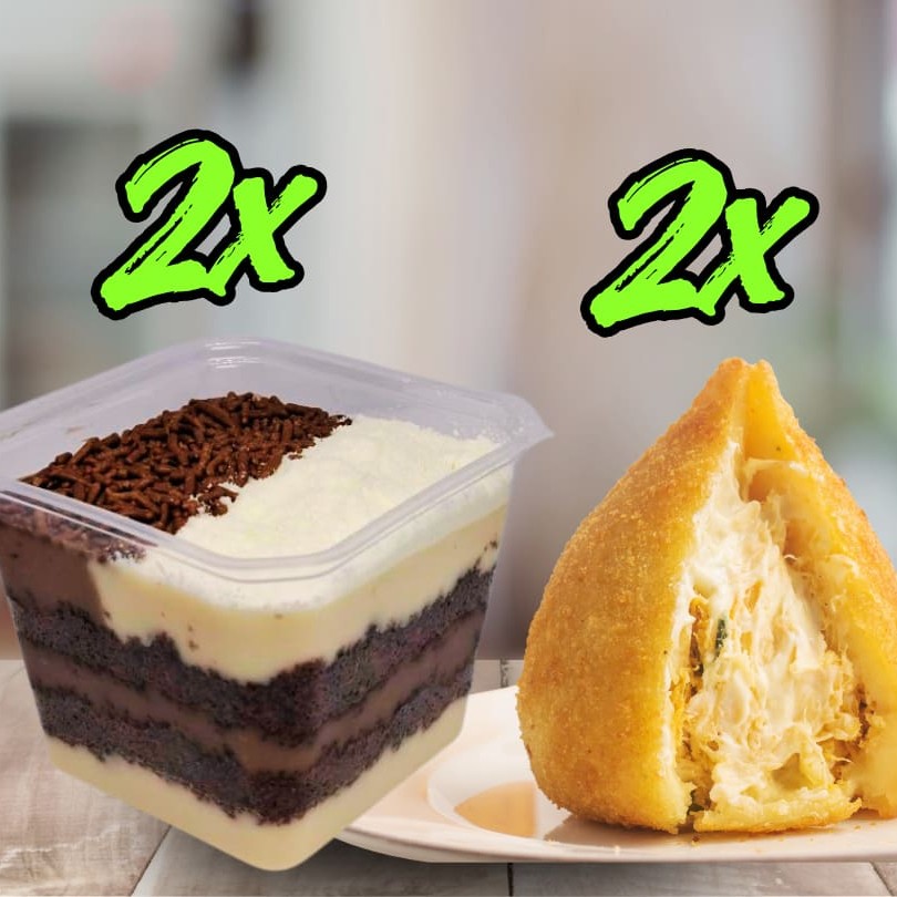 Hora do lanche a dois - 2 deliciosas coxinhas de frango com requeijão + 2 saborosos e macios bolos no pote (você escolhe os sabores). Perfeito pra dividir, conversar e curtir o sabor do momento. Serve até 2 pessoas ----------Tags------------ bolo , bolo no pote , pote , sobremesa , doce , prestigio , chocolate , brigadeiro , gourmet , cupom , desconto , taxa grátis , entrega grátis , confeitaria , mousse , salgado , coxinha , risoli , creme , limão , combo , bolo vulcão , cenoura , artesanal , caseiro , amendoim , paçoca , cappuccino , entrega rápida , desconto , promoção , 0,99 , 0800 , off , barato , melhor preço , oferta , frete grátis , descontão , preço baixo , refri , galera , pavê , ganache , casal