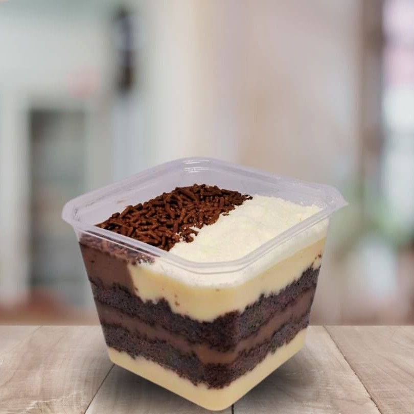 Irresistível! Bolo de chocolate fofinho com camadas generosas de brigadeiro cremoso. Um clássico que conquista a cada colherada. Serve 1 pessoa - Aproximadamente 210g ----------Tags------------ bolo , bolo no pote , pote , sobremesa , doce , prestigio , chocolate , brigadeiro , gourmet , cupom , desconto , taxa grátis , entrega grátis , confeitaria