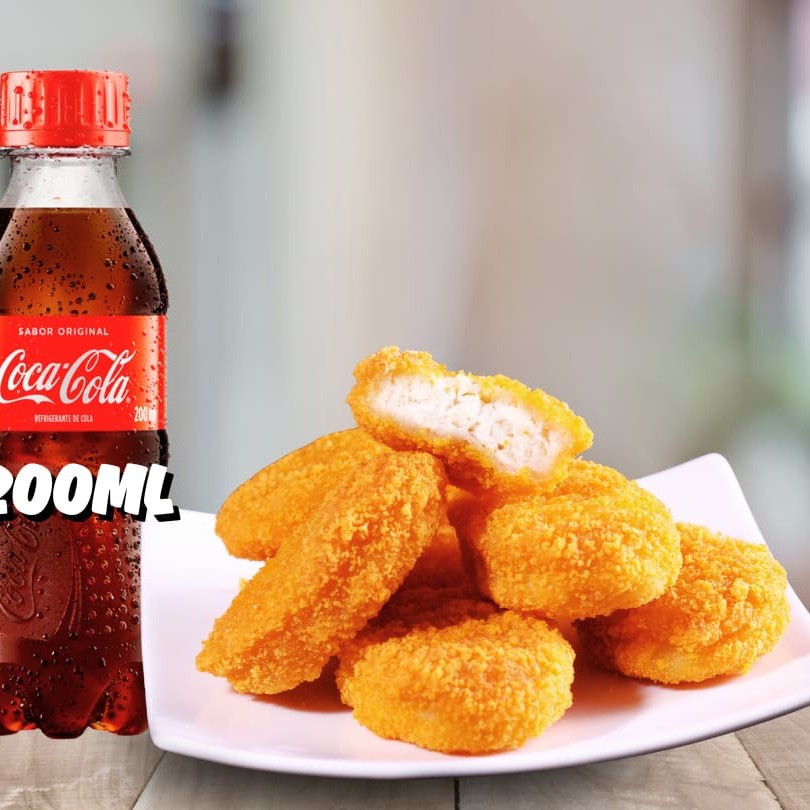 Suculentos - Crocância que conquista! Nuggets de frango sequinhos, douradinhos, irresistíveis e com um Refri geladinho. Uma porção perfeita pra matar a fome a qualquer hora! Serve 1 Pessoa - 10 unidades de aproximadamente 20g cada ----------Tags------------ bolo , bolo no pote , pote , sobremesa , doce , prestigio , chocolate , brigadeiro , gourmet , cupom , desconto , taxa grátis , entrega grátis , confeitaria , mousse , salgado , coxinha , risoli , creme , limão , combo , vulcão , cenoura , artesanal , caseiro , amendoim , paçoca , cappuccino , lanche , promo , refri , nuggets , frango , empanado