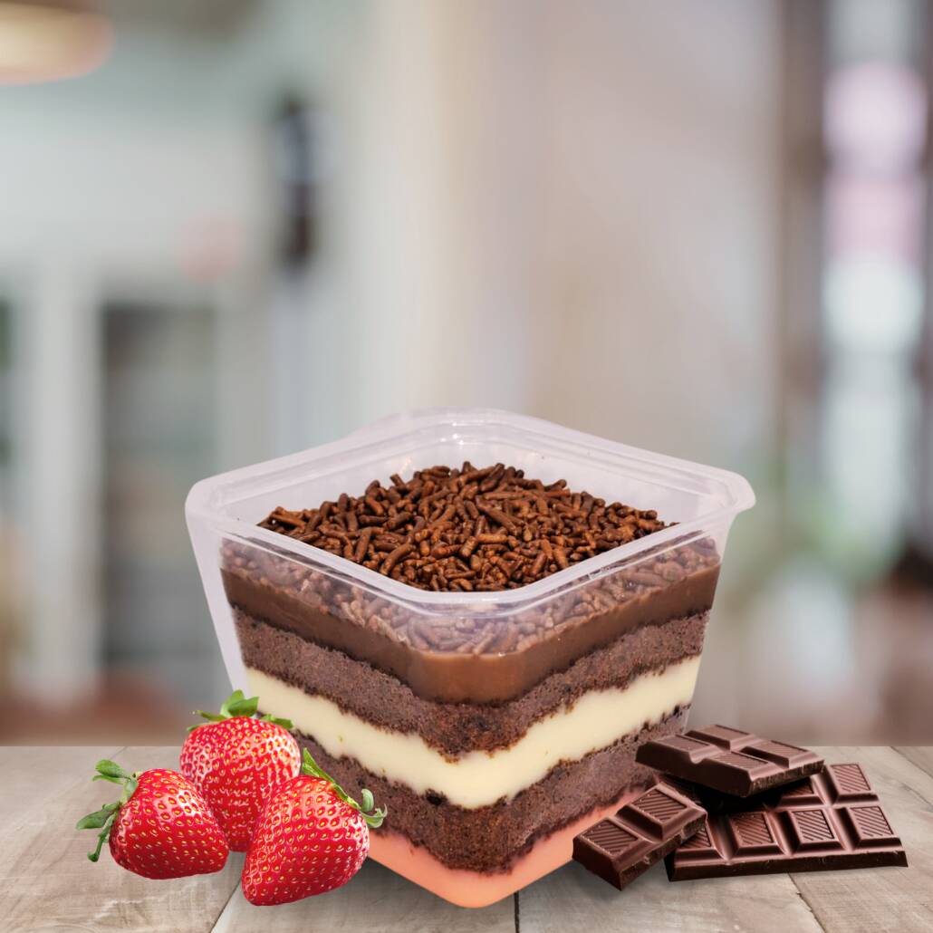 Surpreendente! - O sabor que você não encontra por aí: um bolo de chocolate bem macio, seguido de duas camadas cremosas, uma de morango outra de Ninho e finalizando com um brigadeiro de chocolate no ponto perfeito. Esse sabor você nunca vai esquecer ! Serve 1 pessoa - Aproximadamente 210g -------Tags---------- brownie , bolo , bolo no pote , pote , sobremesa , doce , prestigio , chocolate , brigadeiro , gourmet , cupom , desconto , taxa grátis , entrega grátis , confeitaria , combo , salgado , coxinha , risoles , bebida , hits , promoção , promo , 0,99 , oferta , barato , lanche , marmita , napolitano , morango , Ninho