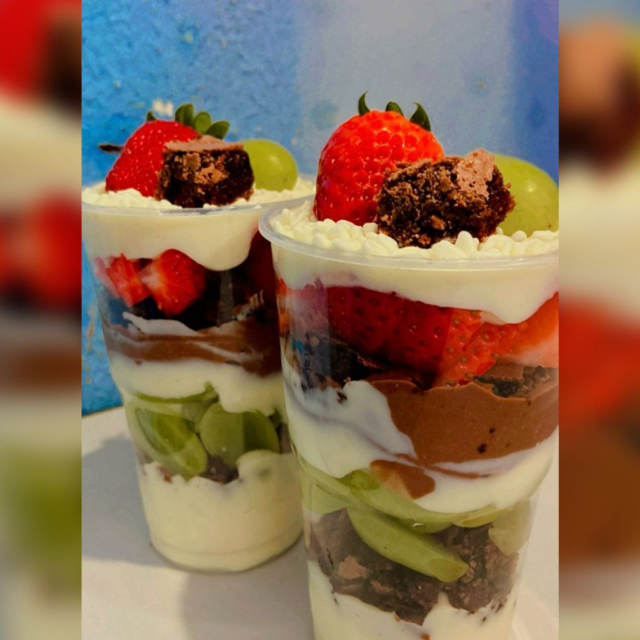 uva, morango,beawnie, creme ninho,creme chicolate
