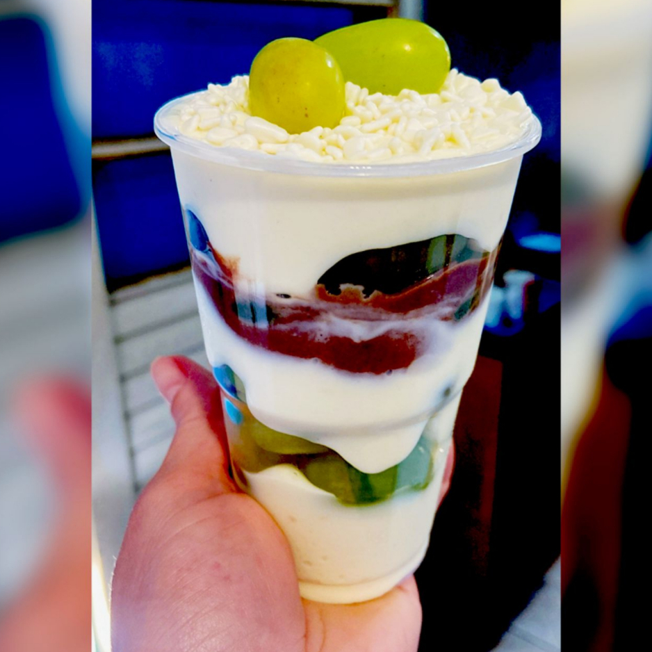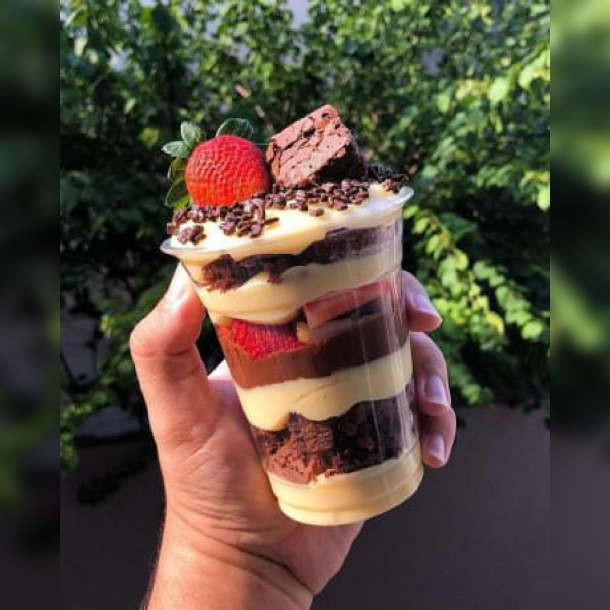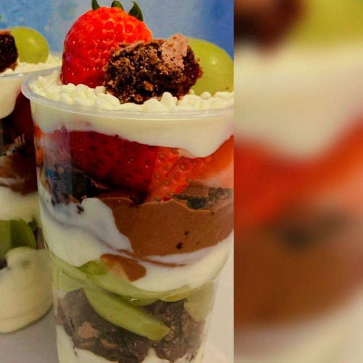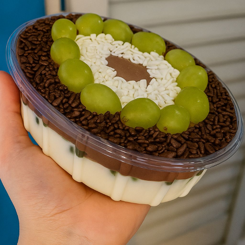 sobremessa incrivel com uvas fresca, pedaços de brawnie , creme ninho,creme chocolate e decoraçao especial combinaçao perfeita 700g