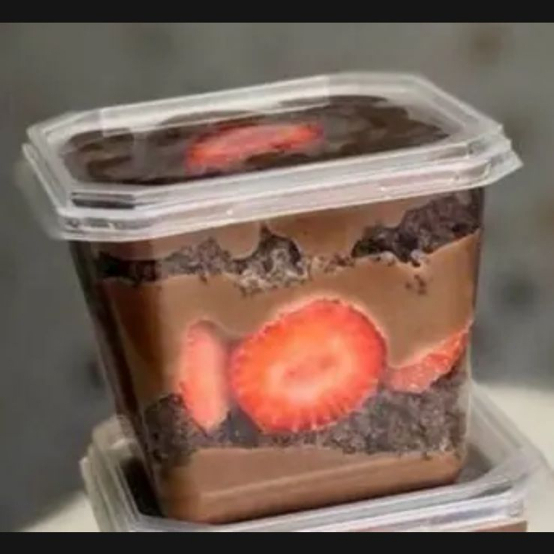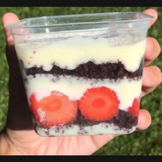 bolo no pote massa de chocolate creme ninho e morangos fresco