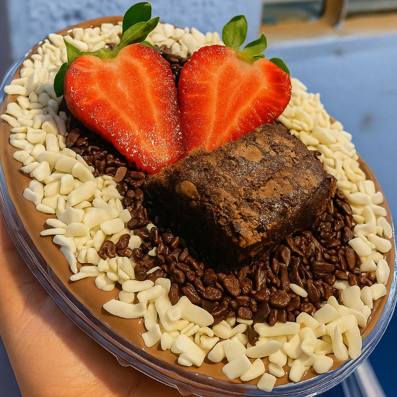 creme ninho,brawniw,creme chocolate,morangos