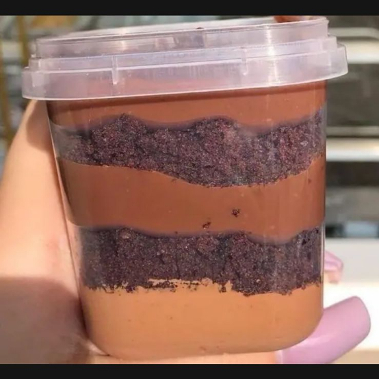 bolo no pote massa de chocolate uma camada brigadeiro e creme de chocolate