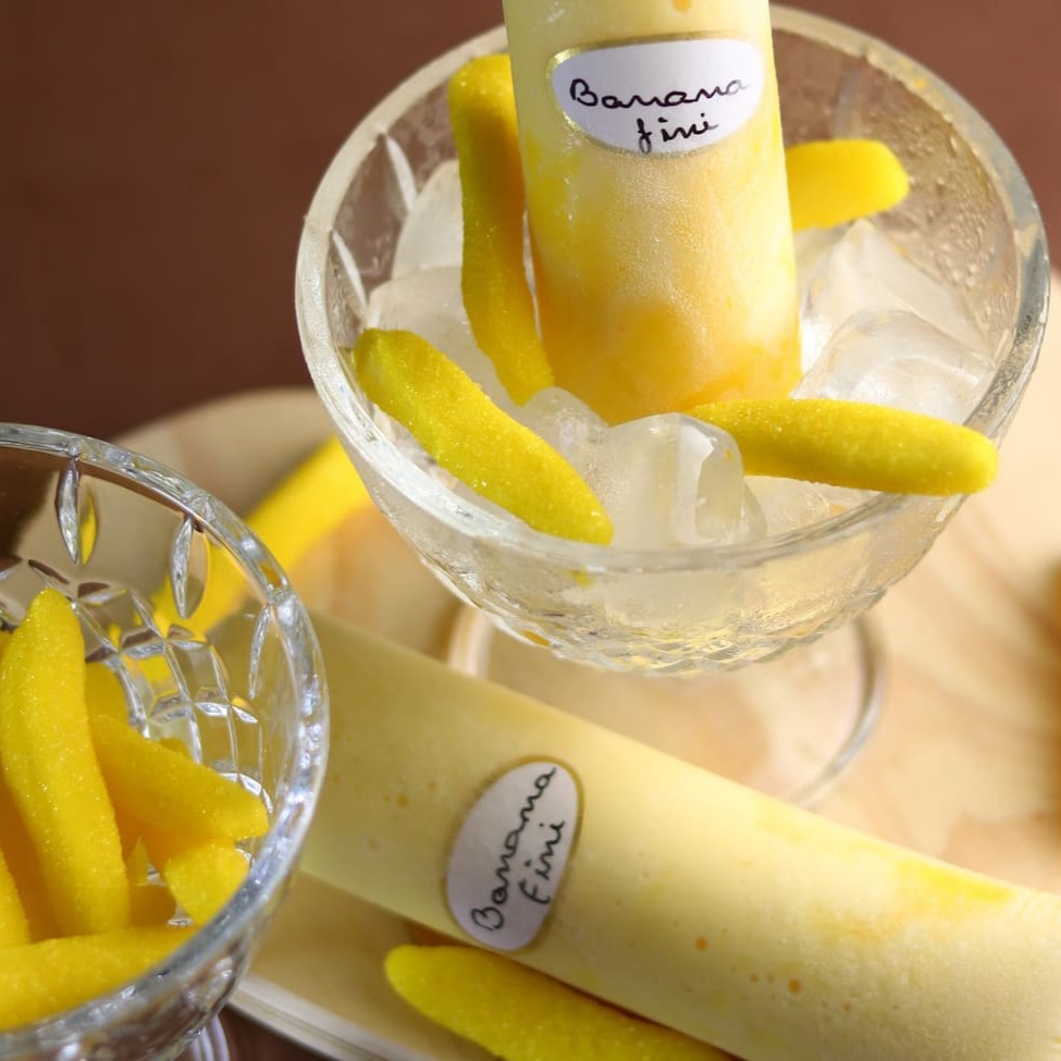 Geladinho Gourmet de Bananinha Fini (O Sabor da Infância!) Este geladinho é pura nostalgia! Combinamos nossa base super cremosa com o sabor inconfundível da Bananinha Fini. Ele tem o toque doce e levemente artificial da bala, misturado à cremosidade do nosso gourmet. Uma explosão de sabor divertida e irresistível que vai conquistar adultos e crianças!