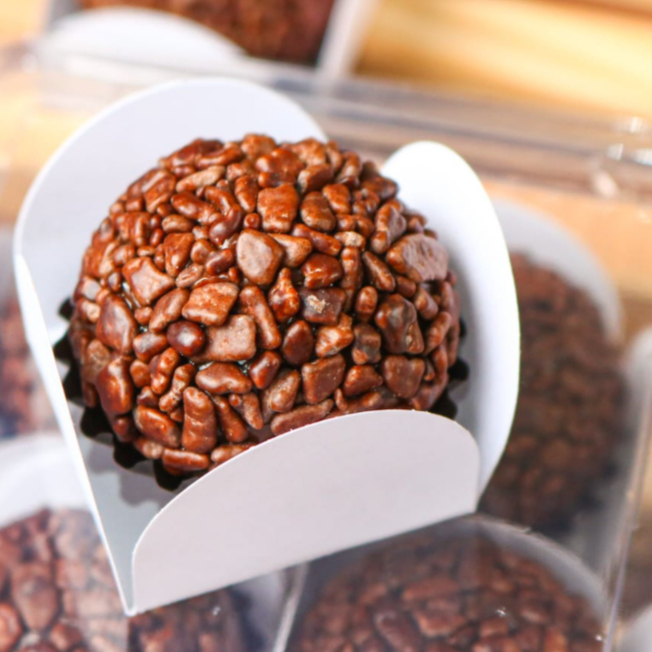 A cremosidade que a gente ama e o sabor que conforta a alma. Prepare-se para a explosão de sabor do nosso brigadeiro! #brigadeirogourmet #docedefesta #sobremesagourmet #chocolatelovers #confeitaria #irresistível #delícia #chocolateartesanal