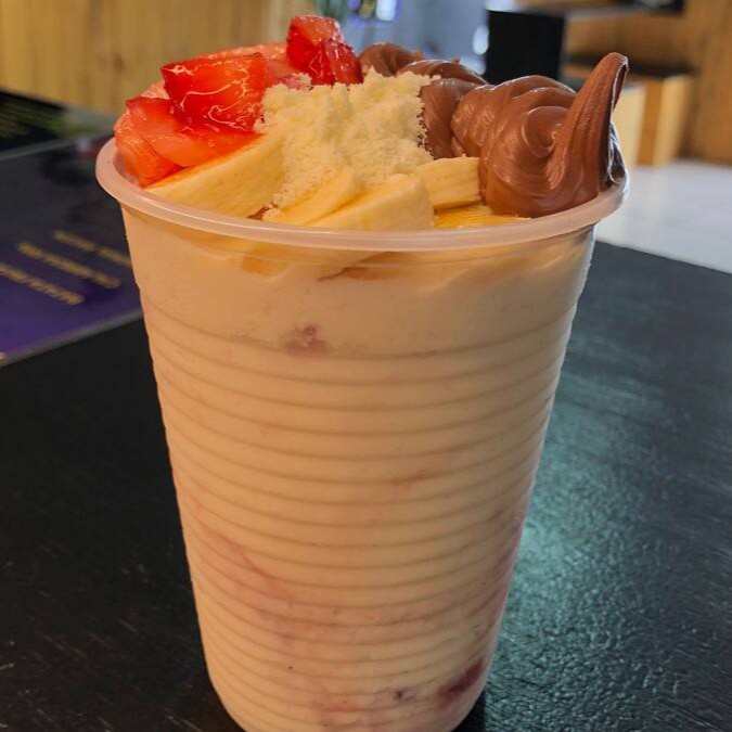 Copo de 300ml com quatro adicionais grátis, divididos em duas camadas.(imagem ilustrativa)