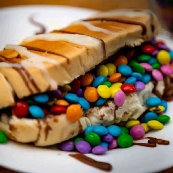 Pão macio, 22 cm, chocolate ao leite e confete.