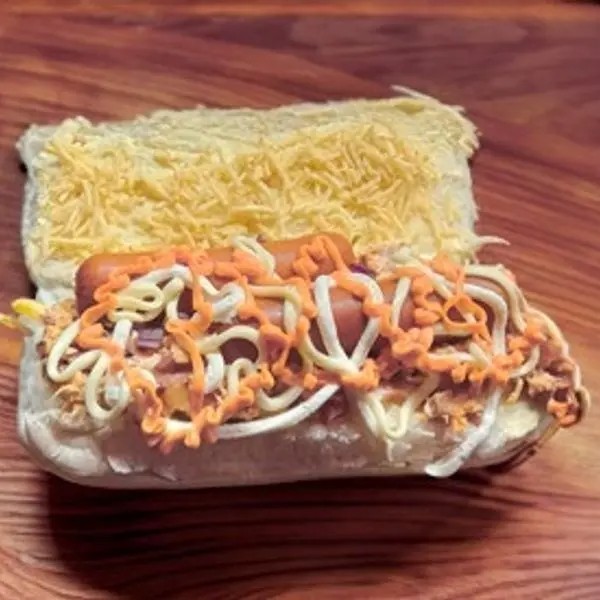 Pão Macio, 28cm, 2x(Vinas Perdigão)Salsicha, Maionese, Tomate, Milho, Cebola, Farofa, Batata Palha, Bacon, Calabresa, Frango, Catupiry Cremoso e Cheddar Cremoso.