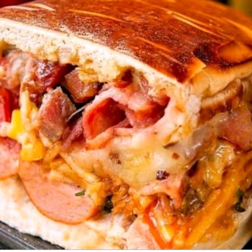 Acompanha queijo presunto calabresa ovo vina bacon tomate alface helmas ketchup