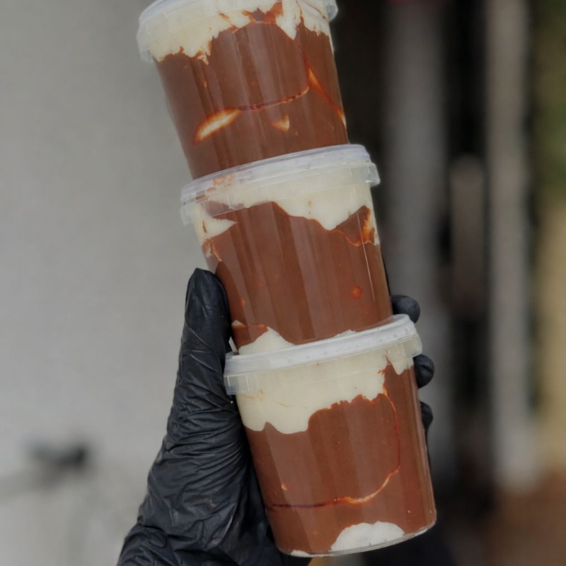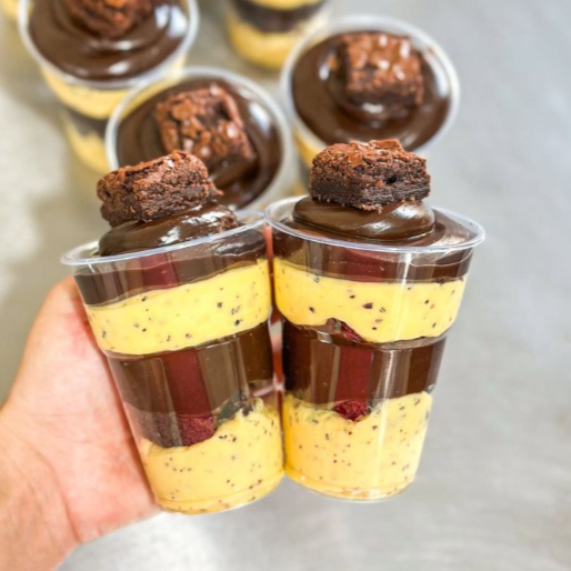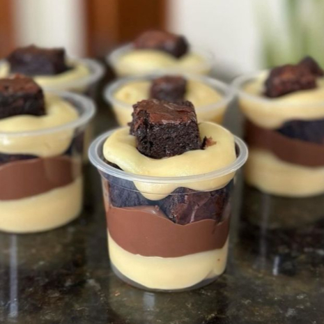Brigadeiro de Ninho cremoso, brownie chocolatudo e molhadinho e Nutella de verdade. Pote de 180ml.