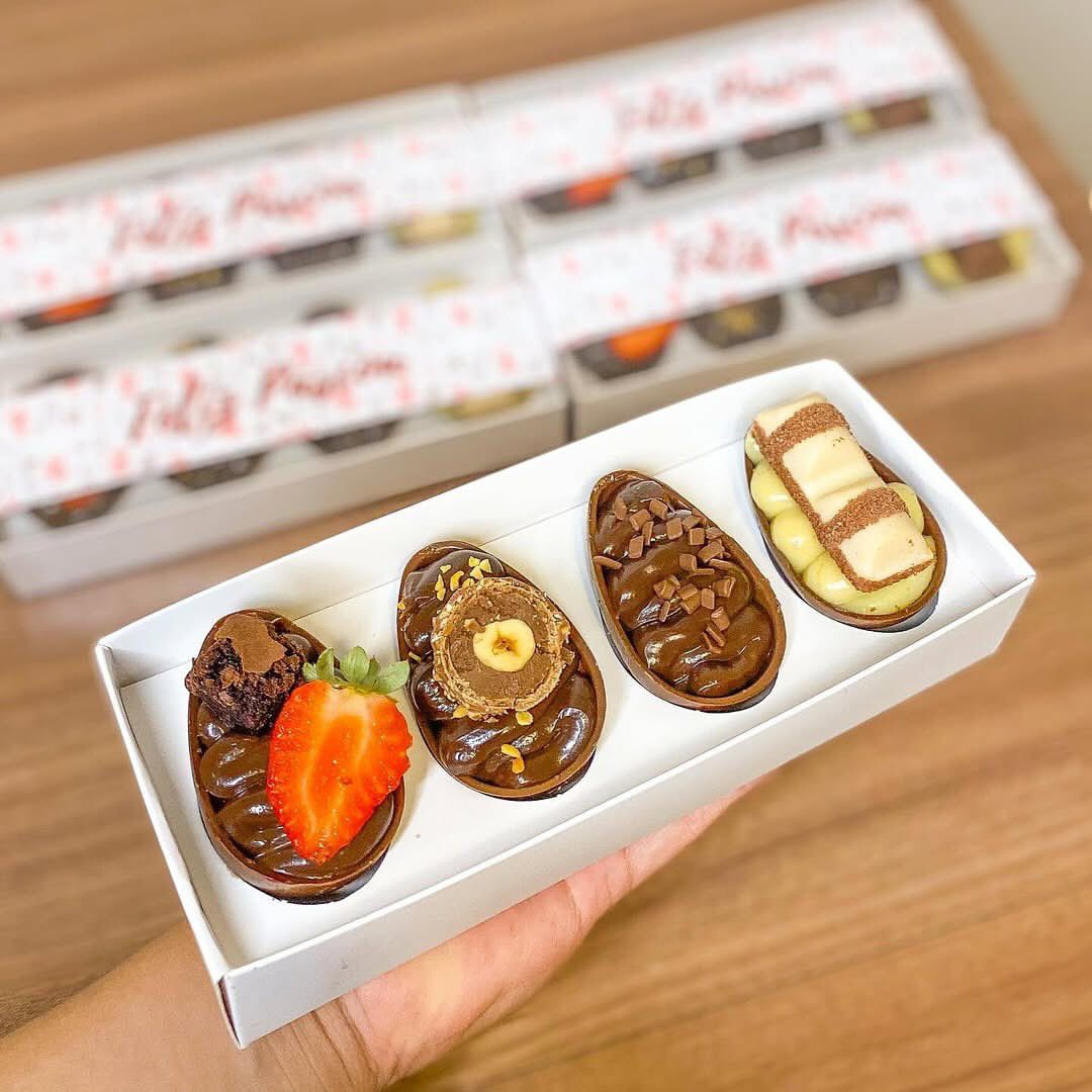 Kit Degustação com 4 mini ovinhos de Pascoa. 1 kinder bueno, 1 ferrero rocher, 1 chocolate trufado e 1 dois amores. ( EMBALAGEM ILUSTRATIVA)