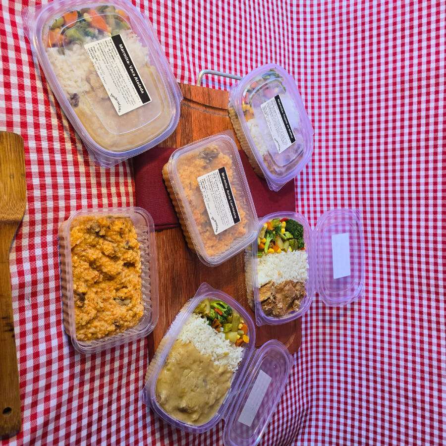 Facilite sua rotina com nossas marmitas! Escolha 5 marmitas da sua preferência, aqueça e se delicie!