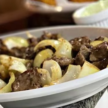 Coração de Galinha na Chapa Acebolado