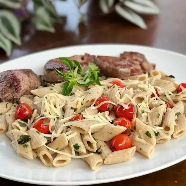 Delicioso e sofisticado! O medalhão de mignon grelhado é uma escolha clássica e saborosa, e o penne integral na manteiga traz um toque leve e delicado. A combinação com o tomate cereja e o manjericão fresco adiciona frescor e equilíbrio ao prato. Perfeito para quem busca uma refeição deliciosa e cheia de sabor!