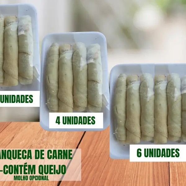 Panqueca de Carne com Queijo na Medida Certa!** Recheio saboroso e equilibrado, com carne bem temperada e queijo na medida certa para aquele toque especial. Acompanhada de um **molho caseiro opcional**, feito com todo carinho pra deixar sua refeição ainda mais gostosa!