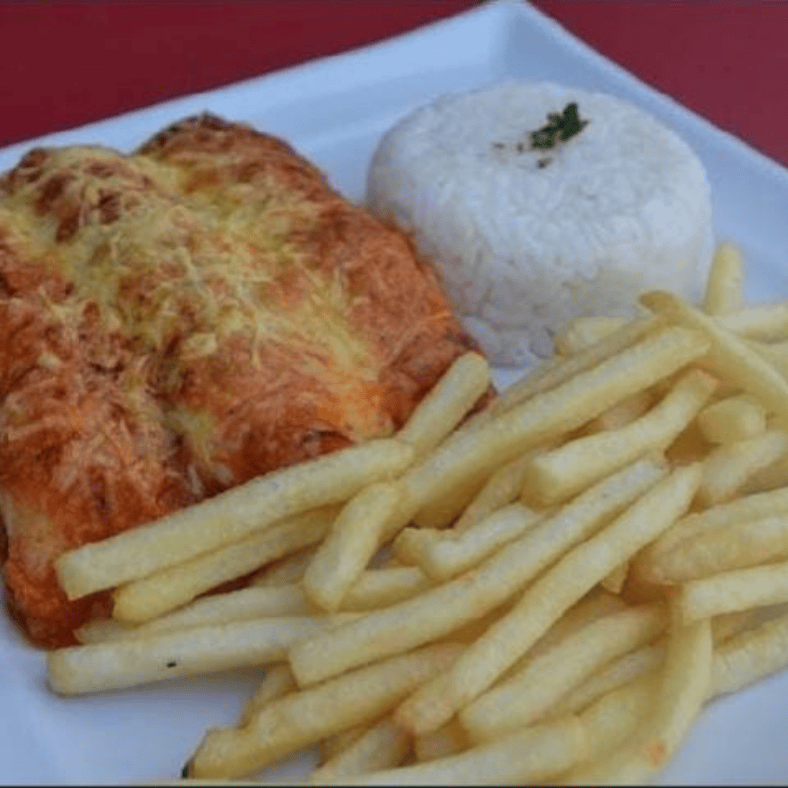 Acompanha arroz branquinho e batata frita crocante. Uma combinação irresistível para todos os gostos