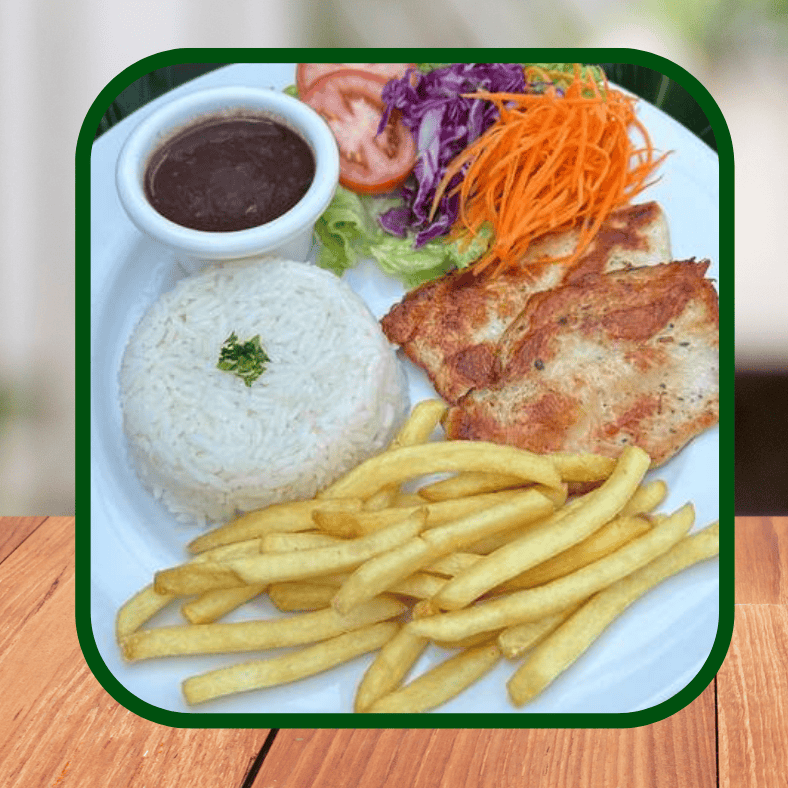 Acompanha Arroz, Feijão, Fritas e Salada